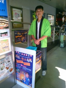 浴衣姿で乗車券を見せるとチラシと割引券、そして帰りの乗車券をいただけました。