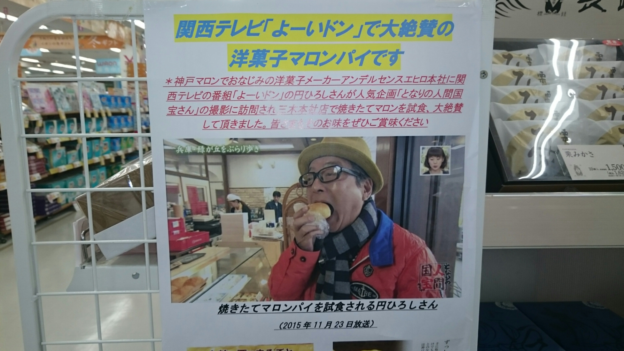 横道にそれましたが、 イオン三木青山店でも、緑が丘のサンロード商店街に本店のある、 『アンデルセンスエヒロ』があります。三木のおみやげに、旅行先、出張先に持って行ったのが、マロンパイの『みきやまマロン』。
