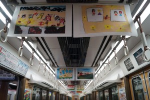 現在、6001編成の車内でNPO法人「ラリグラス」主催による「夢列車」の絵画の展示が行われています。