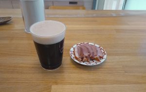 ここのひる飲みメニューは有馬麦酒の生と生ハムのセット。