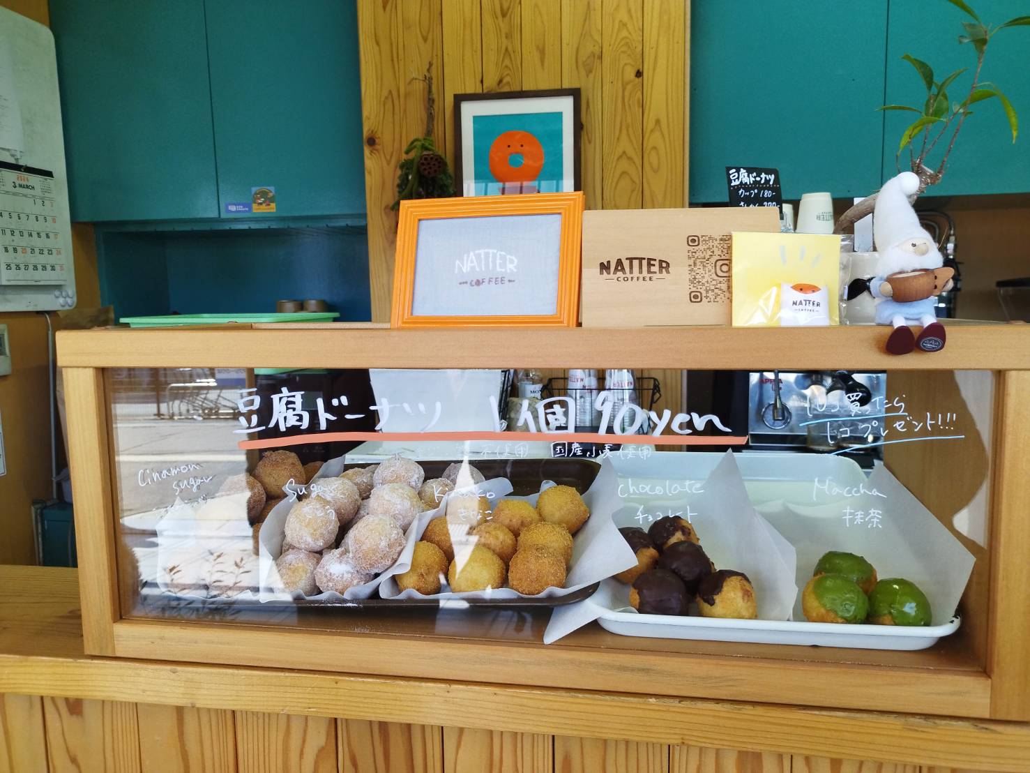 売りはおいしいコーヒーともに、豆腐ドーナツ。