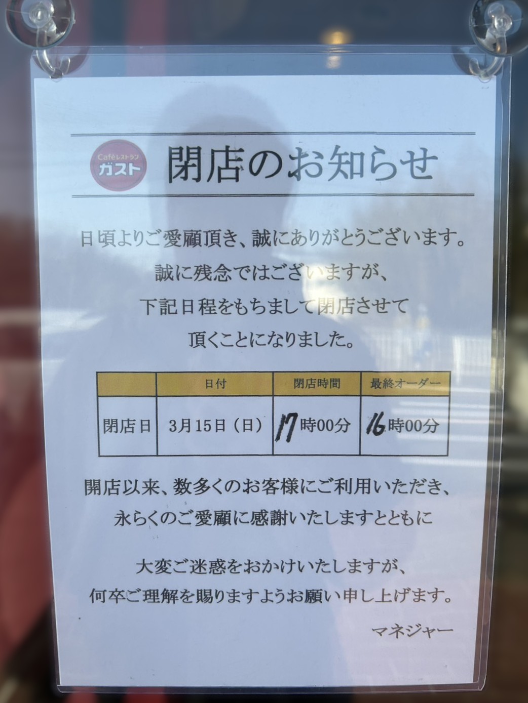長年、押部谷のまちに寄り添ってくれたガストに、感謝を込めて・・・。