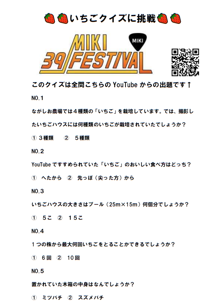 現地では、いちごクイズ全問正解者に
