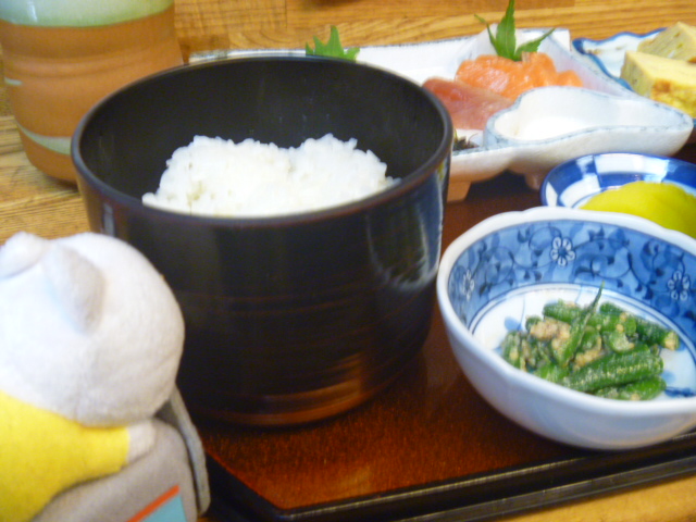 しんちゃん、粟生線のうまいものが好きなので、「刺身定食、美味しかっただワン(^_^)v」とのこと。
